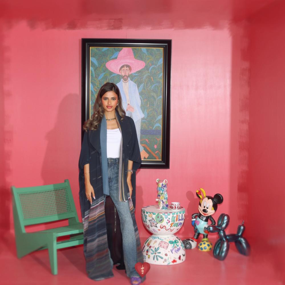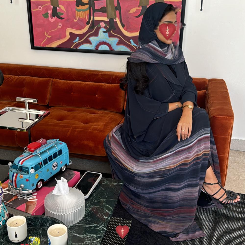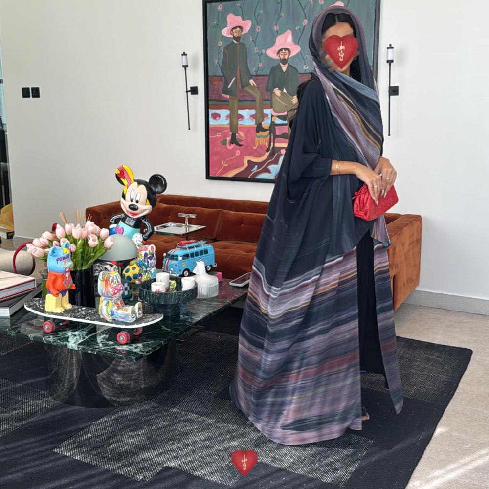 التفاصيـل :عباية قماش شيفون مشجر فرنسي اسود وموف طباعة خاصة لأصايل لـاين ، قصة بشت ، طرحة مشجره نفس قماش العباية.