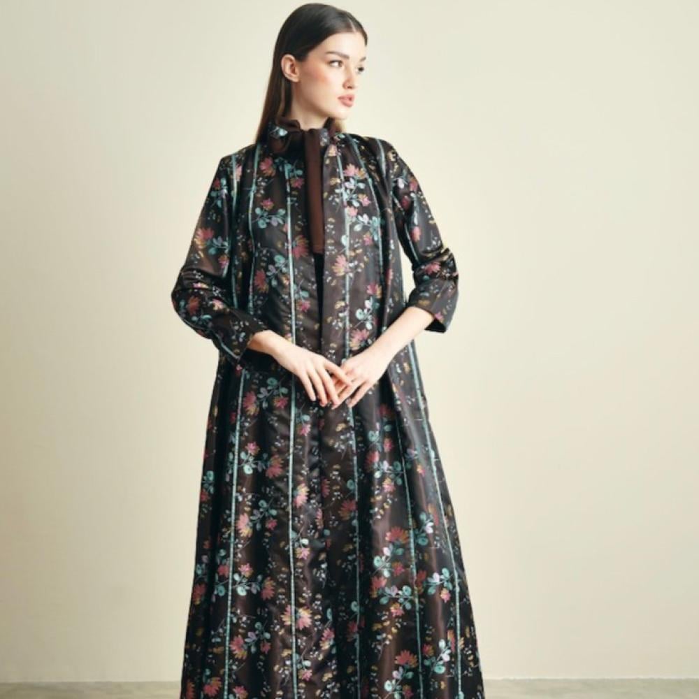 عبايـة #٤٧٢ السعر : ٤٣٧ ريال شامل الضريبة. التفاصيل : عباية قماش تفته مشجر بني قصات قيطان من نفس قماش العباية، قصة كلوش، طرحة بني طرف كلفة. غسيل العباية : الرجاء مراعاة العبايه في الغسيل وننصح بالغسيل الجاف فالمغاسل المختصة.