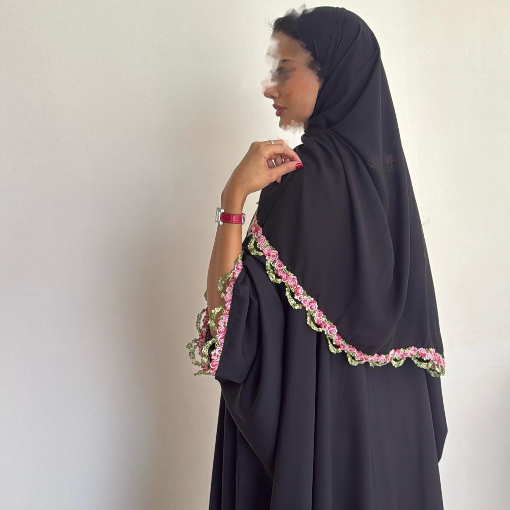 عبايـة #٤٨٥السعر : ٤٣٧ ريال شامل الضريبة.التفاصيل : عباية قماش كريب ناعم ، تطريز ملون ، قصة بشت ، طرحة اسود طرف كلفه.غسيل العباية : الرجاء مراعاة العبايه في الغسيل وننصح بالغسيل الجاف فالمغاسل المختصة.