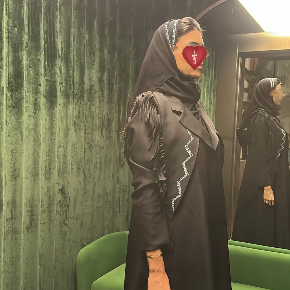 #332السعر : 437 ريال شامـل الضريبة التفاصيـل : عباية قماش كتان اسود تطريز زري سماوي ، قصة ربع كلوش ، طرحة اسود مطرز.تعليمات غسيل العباية : الرجاء مراعاة العبايه فالغسيل وننصح بالغسيل الجاف فالمغاسل المختصة.