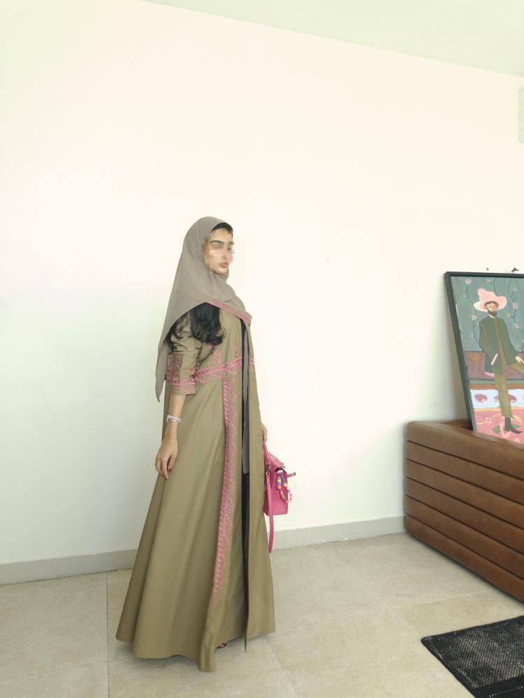 عبايـة #٤٧٧السعر : ٤٣٧ ريال شامل الضريبة.التفاصيل : عباية قماش كتان بني، تطريز زري فوشي، قصة كلوش، طرحة بني طرف كلفة تطريز.غسيل العباية : الرجاء مراعاة العبايه في الغسيل وننصح بالغسيل الجاف فالمغاسل المختصة.