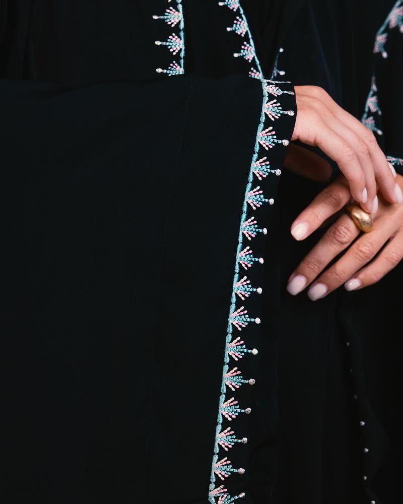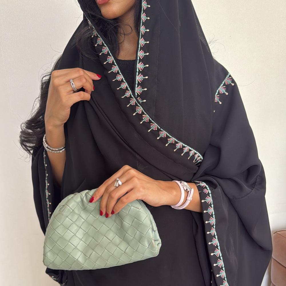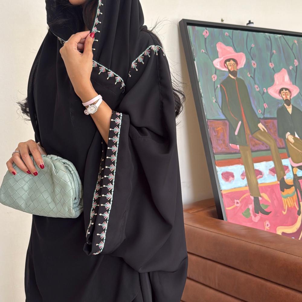 عبايـة #٤٨٤السعر : ٤٣٧ ريال شامل الضريبة.التفاصيل : عباية قماش كريب ناعم ، تطريز ملون ، قصة بشت ، طرحة اسود طرف تطريز.غسيل العباية : الرجاء مراعاة العبايه في الغسيل وننصح بالغسيل الجاف فالمغاسل المختصة.
