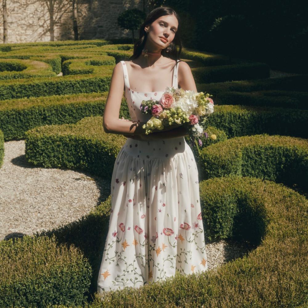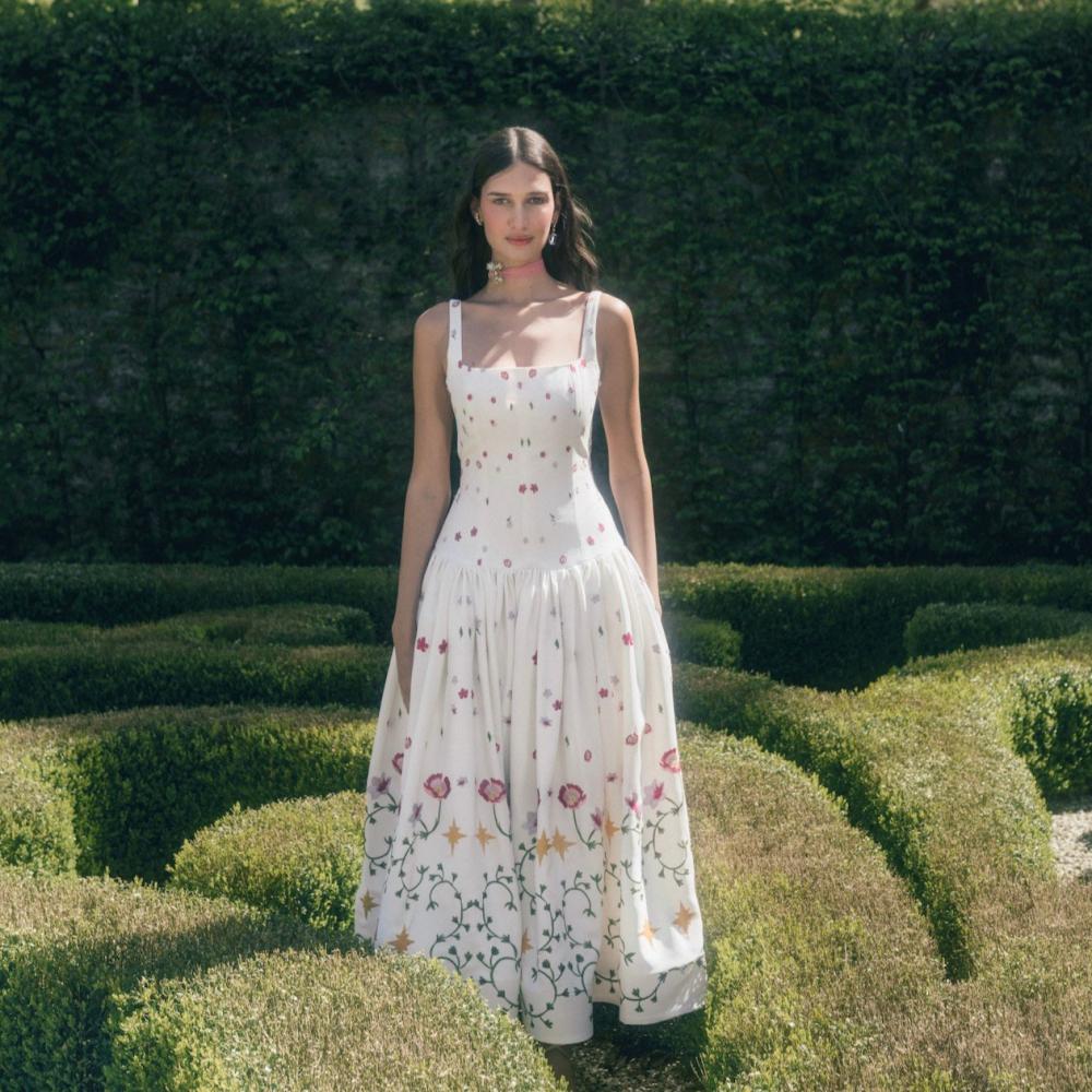 ما يميز هذا الفستان هو التطريز الملون الكامل على القماش—